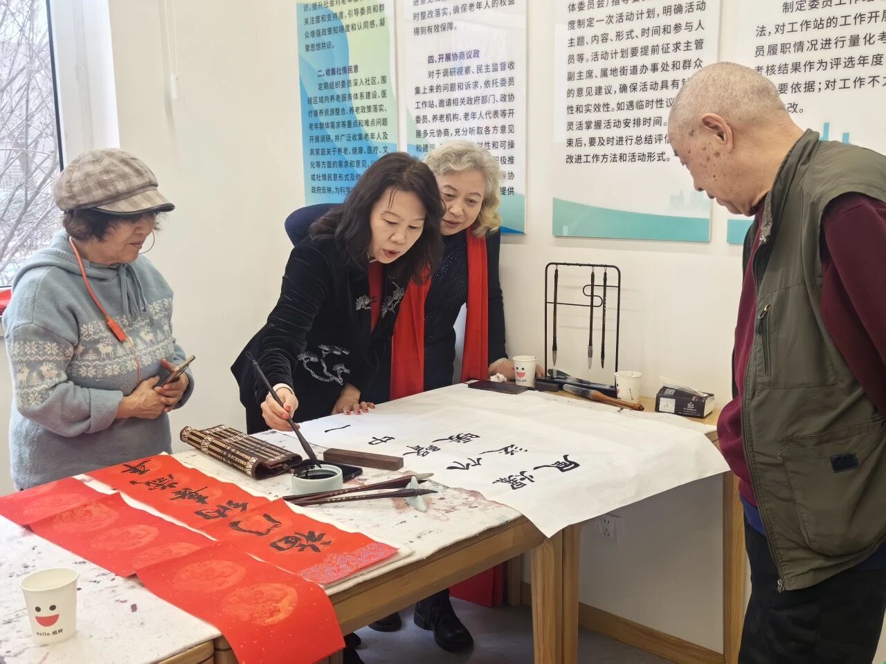 为积极响应区政协“六送下乡”为民服务行动倡议,持续擦亮“委员就在身边”履职品牌,在新春佳节来临之际,区政协紫金康养委员工作站举办“喜迎新春·情暖万家”送福送春联公益活动。活动特邀区政协教育界委员、区书法家协会秘书长刘立众及社区书法爱好者共同参与,现场挥毫泼墨,将新春祝福送到居民身边。